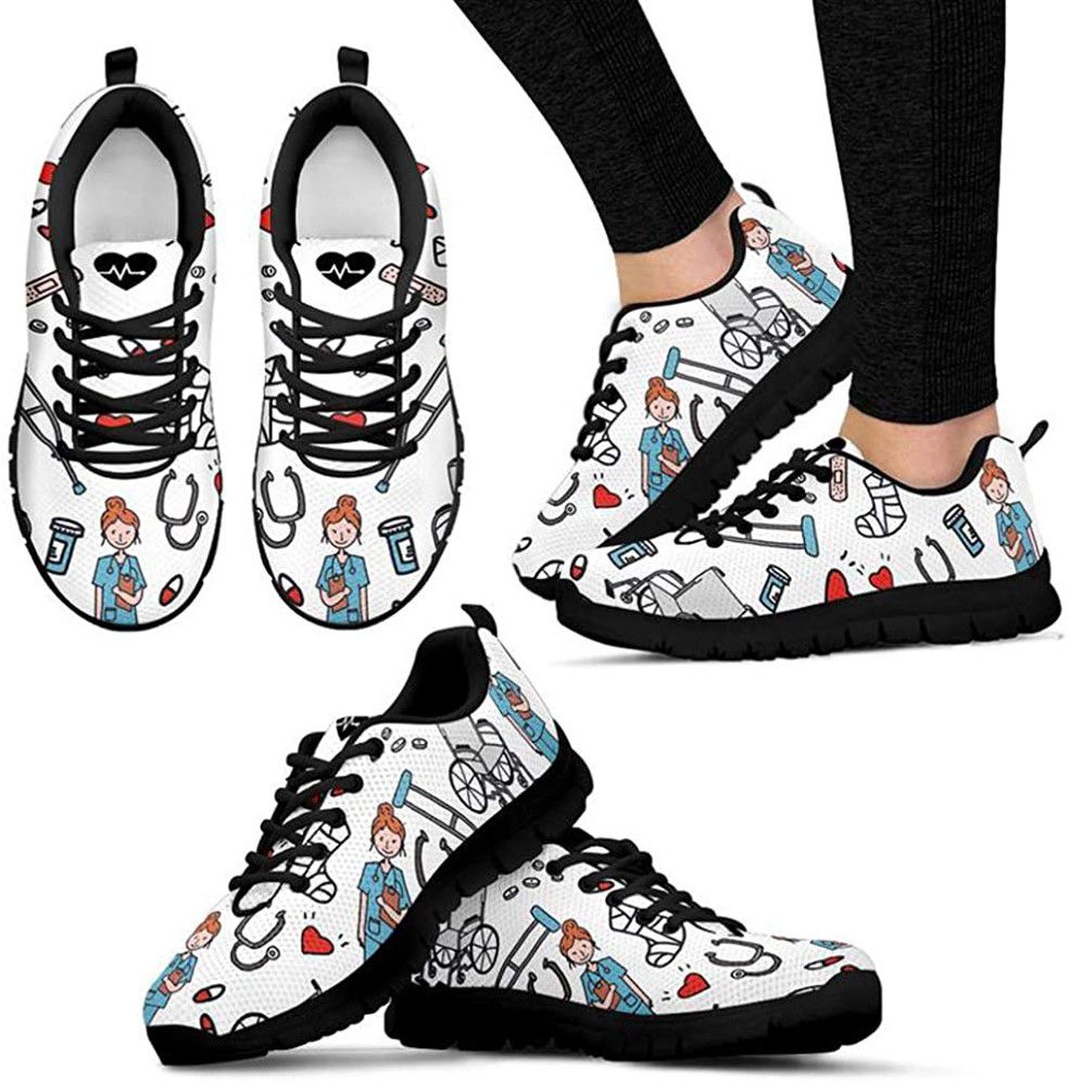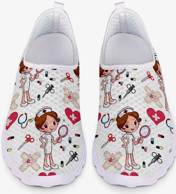 POLERO Nurse Bear Sneaker Krankenschwester Schuhe Fashion Damen Laufen Walking Schnürschuhe Cartoon Sportschuhe