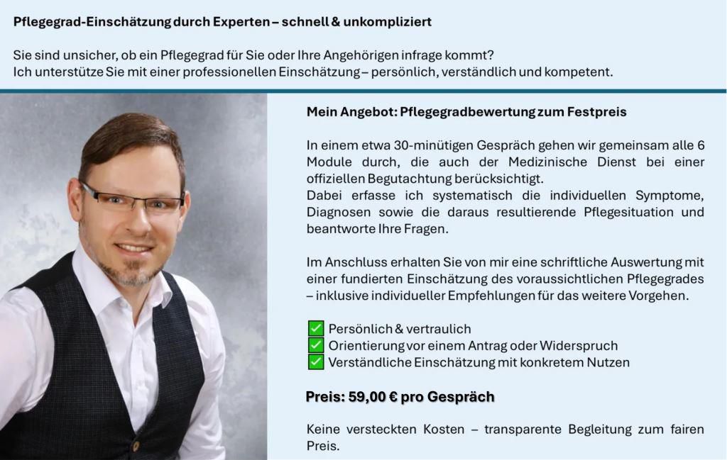 Dieses praxisorientierte Webinar vermittelt Ihnen das nötige Wissen, um die Begutachtung des Medizinischen Dienstes souverän zu meistern – ganz gleich, ob Sie Betroffener, Angehöriger oder Pflegekraft sind.