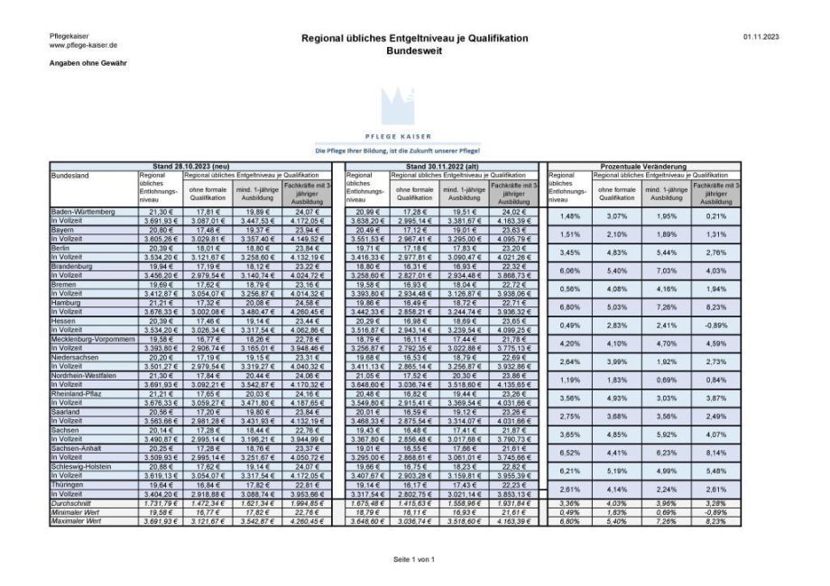 gesetzlicher Pflegemindestlohn für Pflegehilfskräfte gelernt (1 Jahr Ausbildung)