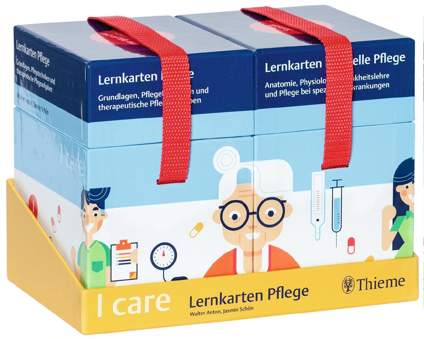 Das „I care Lernkarten Pflege – Set“ bringt Dich sicher durch das Examen. Alle prüfungsrelevanten Inhalte aus den drei I care Bänden Pflege, Krankheitslehre sowie Anatomie und Physiologie – reduziert auf zwei Boxen.